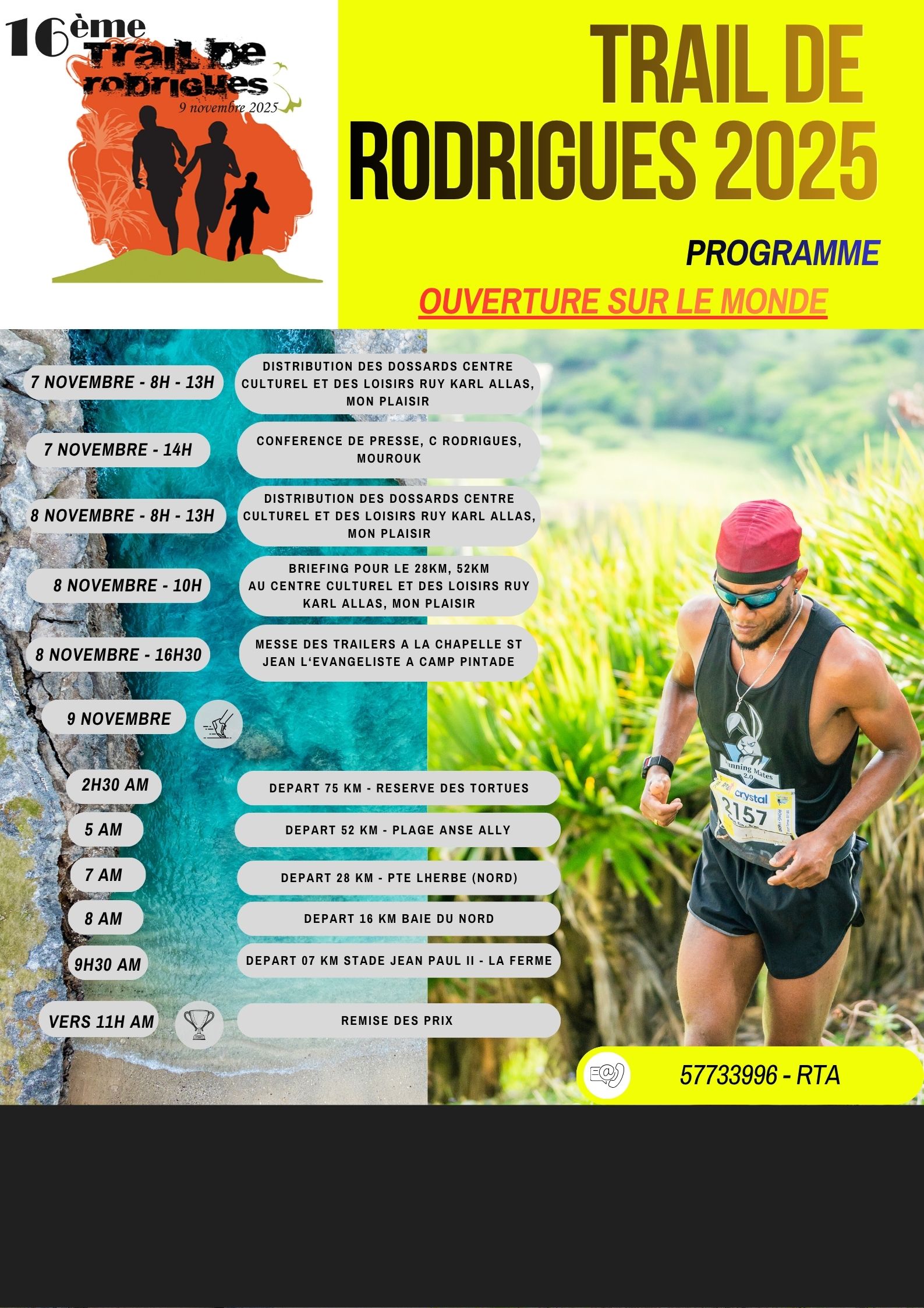 Le Trail de Rodrigues vise a réunir des hommes et des femmes, des enfants autour d’une pratique saine alliant le sport, la découverte , la notion de proximitee avec la nature et le respect de l’environnement.